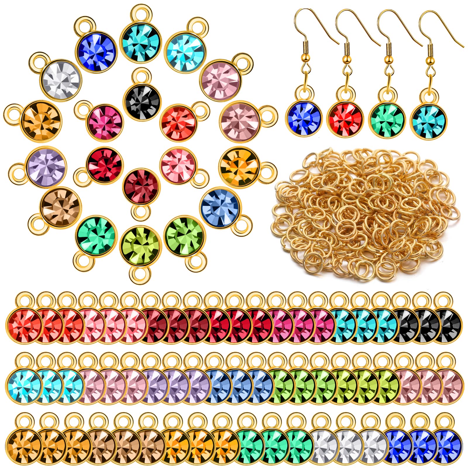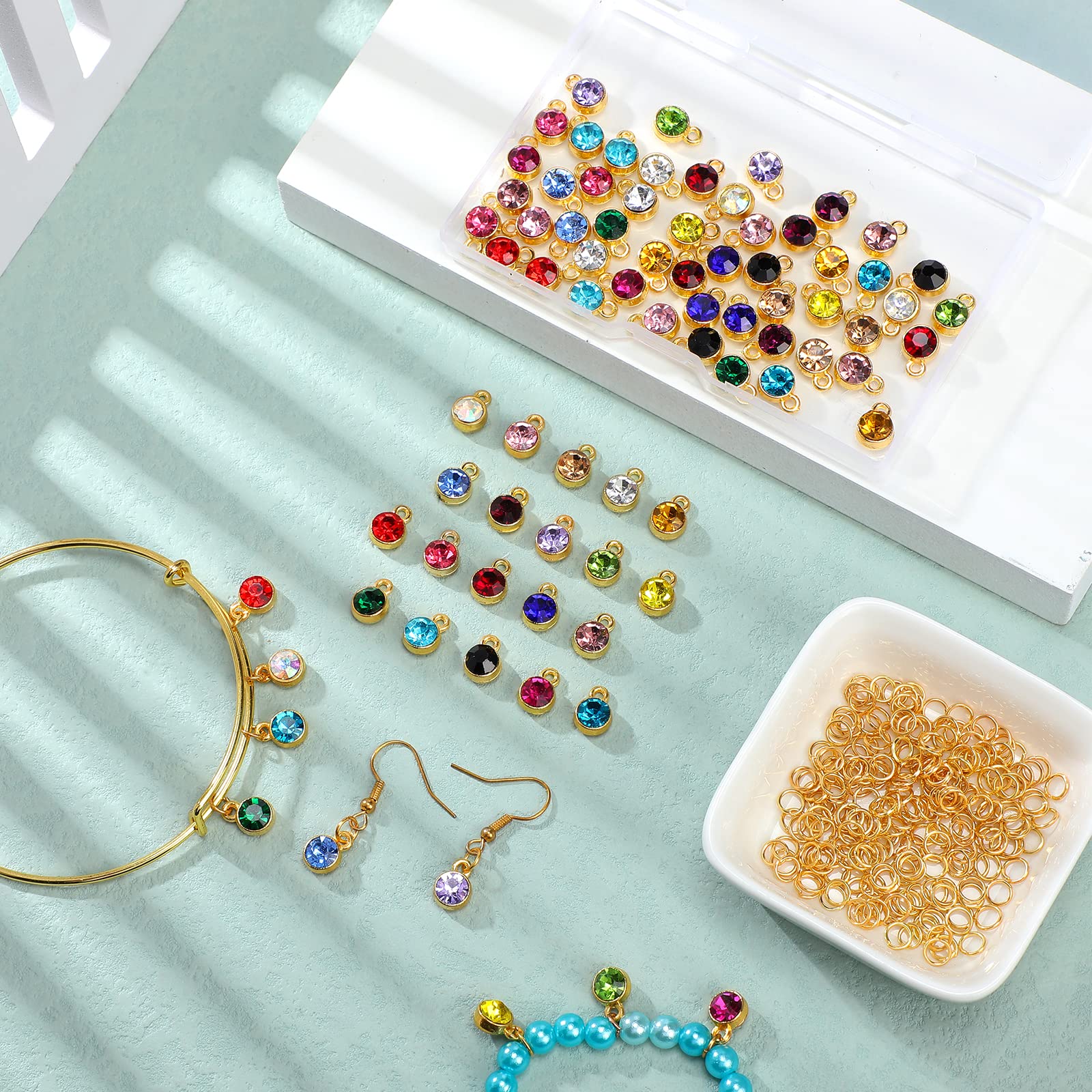 80pcs Crystal Birthstone Charms with 200 Jump Rings, Mixed Color Round Pendants for DIY Jewelry Making