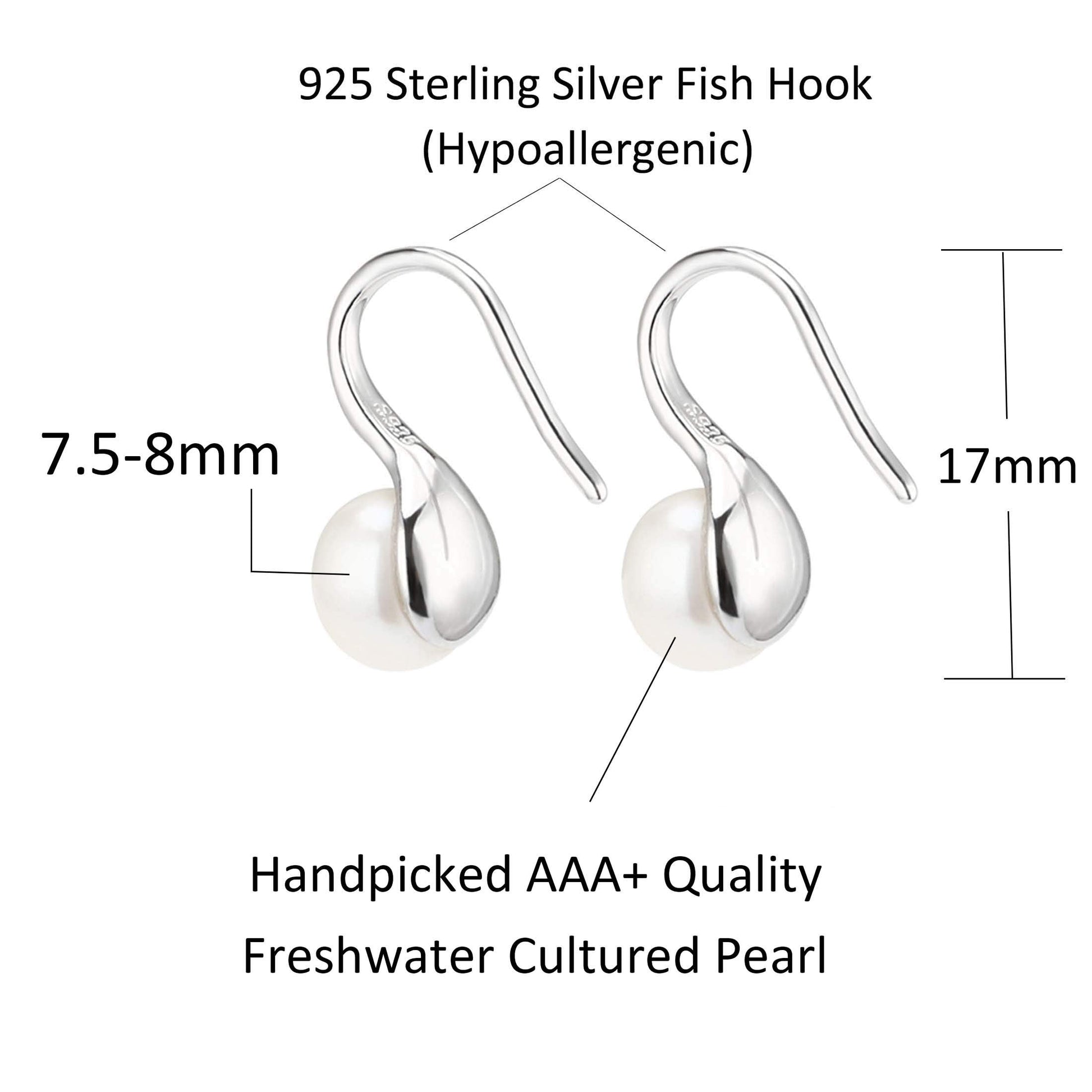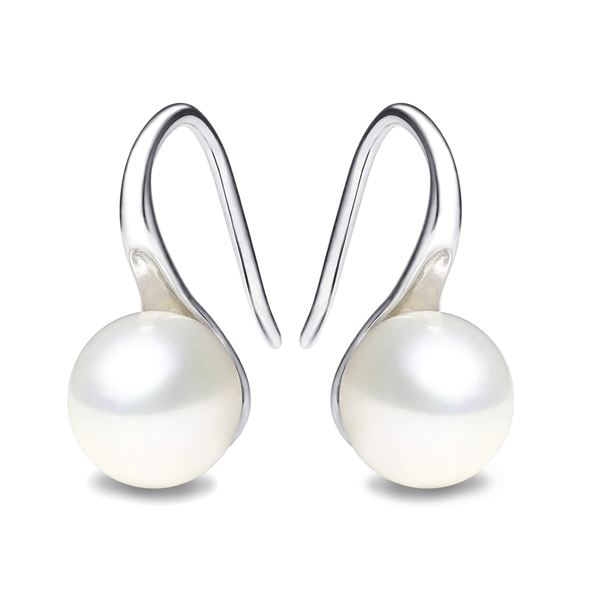 - TOP QUALITY - Hand selected AAA quality round white Freshwater cultured pearl earrings for women dangling. Genuine Cultured Freshwater Pearls. All pearls are picked for their luster, quality, color, and cleanliness.