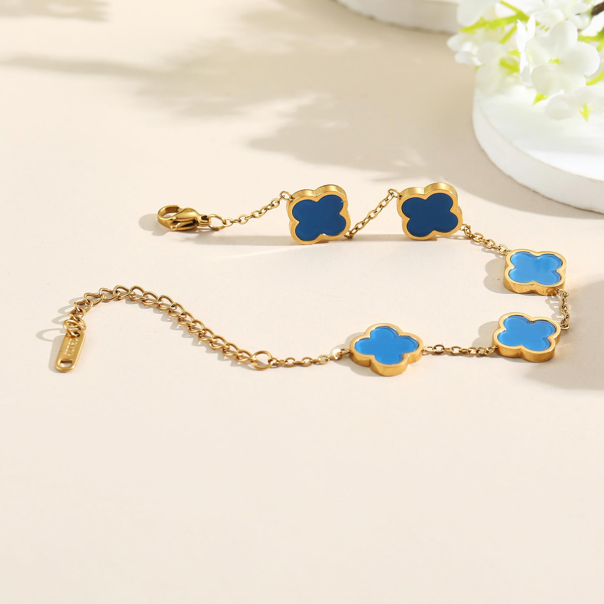 - Fine Workmanship: The blue four-leaf clover bracelet is made of food-grade stainless steel, and the surface is plated with precious platinum. The excellent craftsmen design and create, so that every detail is deeply rooted in the hearts of the people! Simple and stylish women's bracelet pieces.