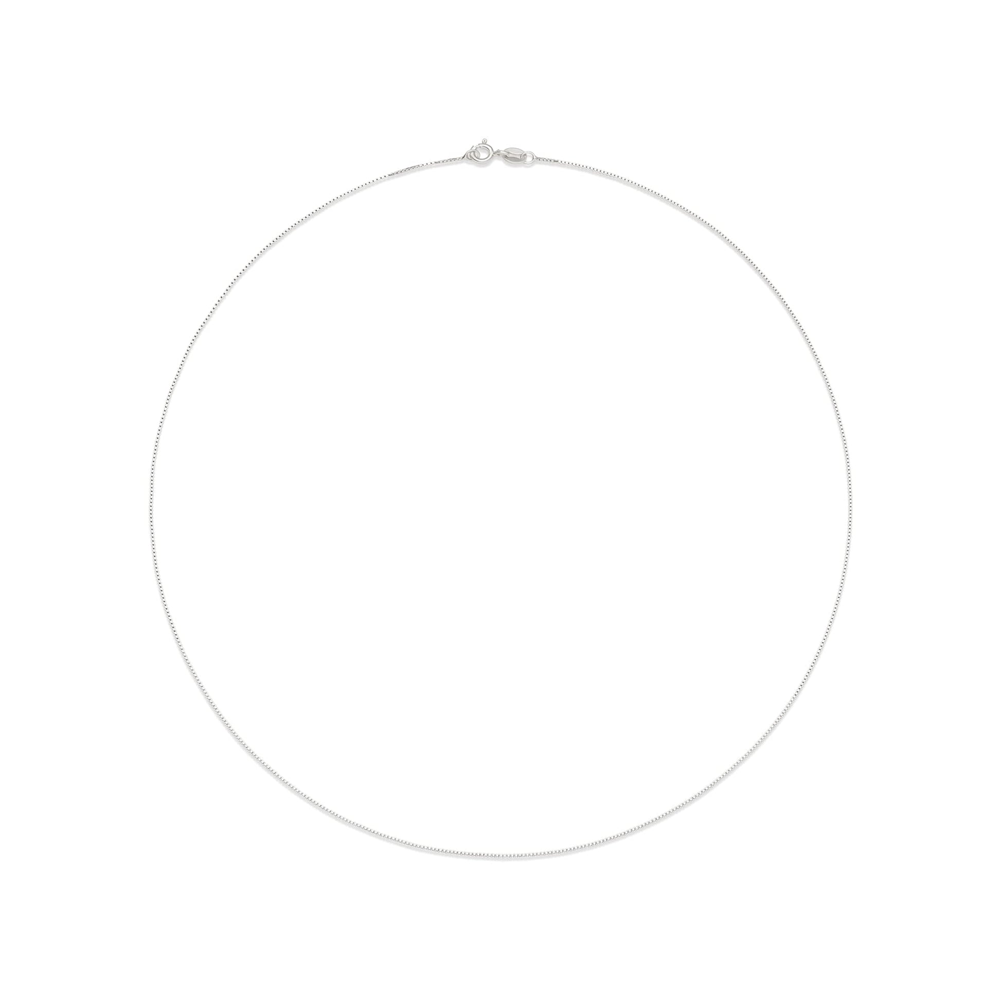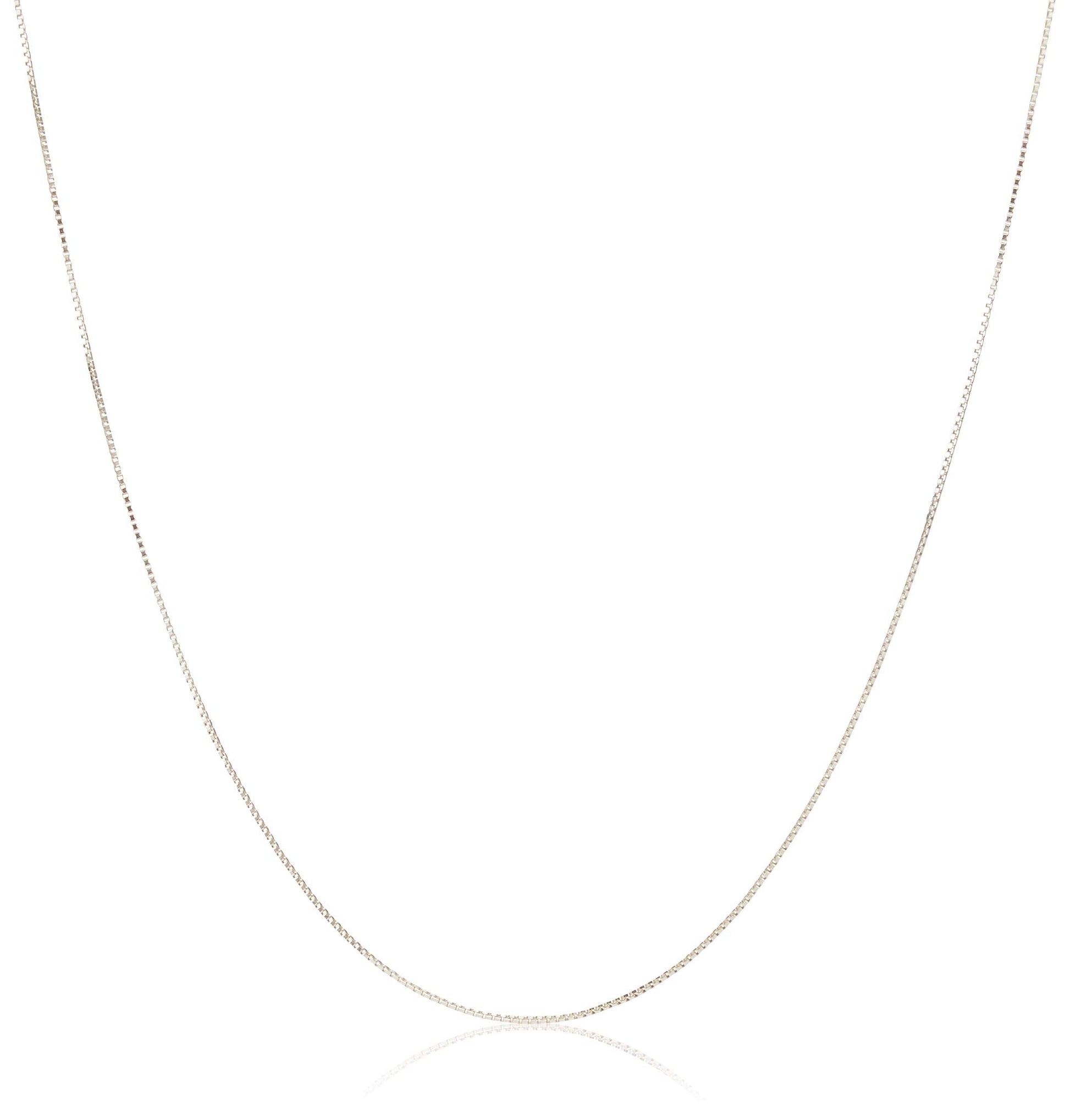 - STYLE: Sterling Silver box chain necklace is 18" long and 0.8mm wide; this chain is thin, light and versatile, it is ideal for small to medium pendants; perfect on its own or for stacking and layering with your favorite Amazon Essentials chains.