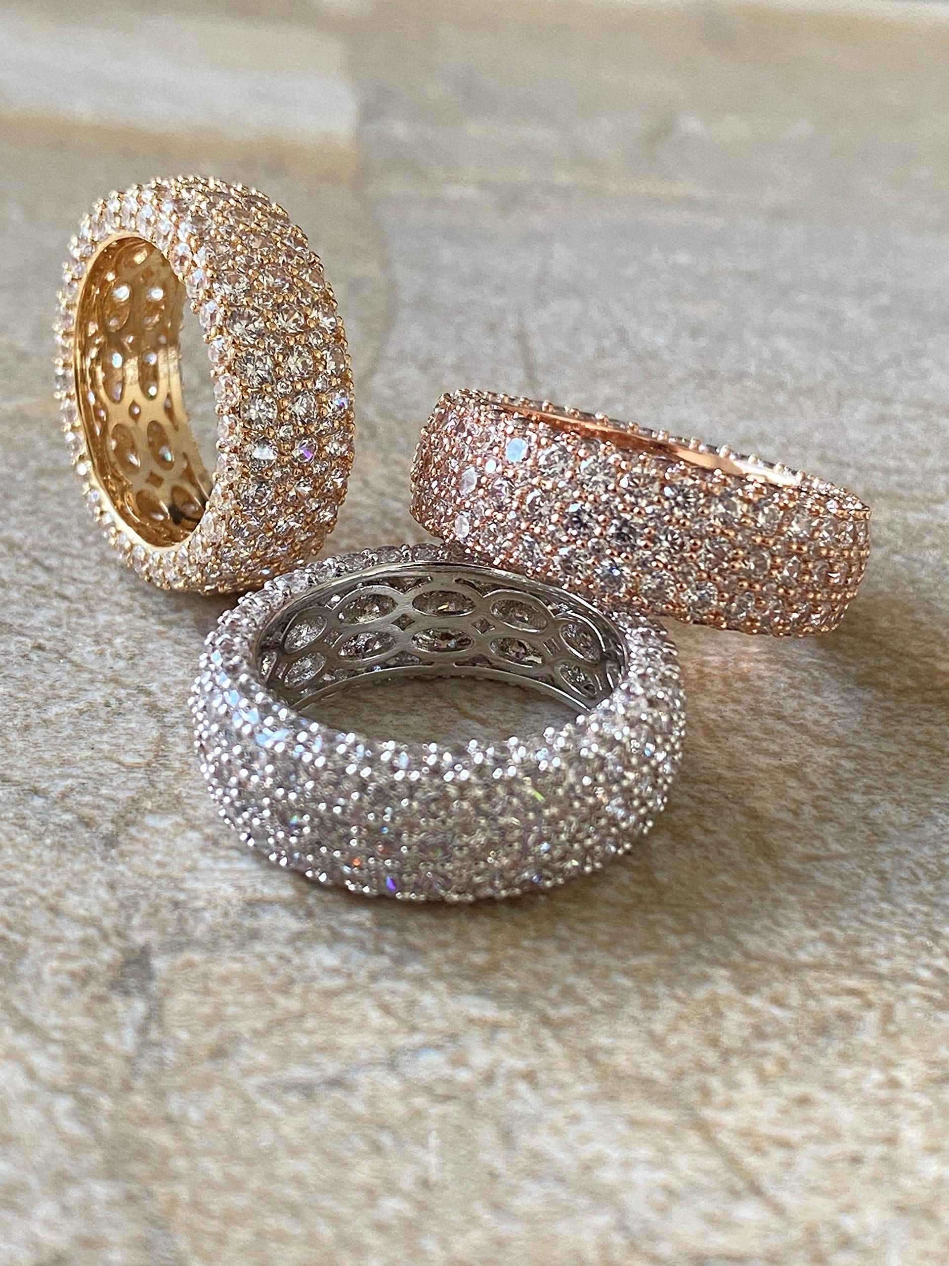 Barzel Women's Wide Eternity Ring Wedding Band – 18K White or Rose Gold Plated Wide Band with Sparkling Cubic Zirconia, Elegant Eternity Ring