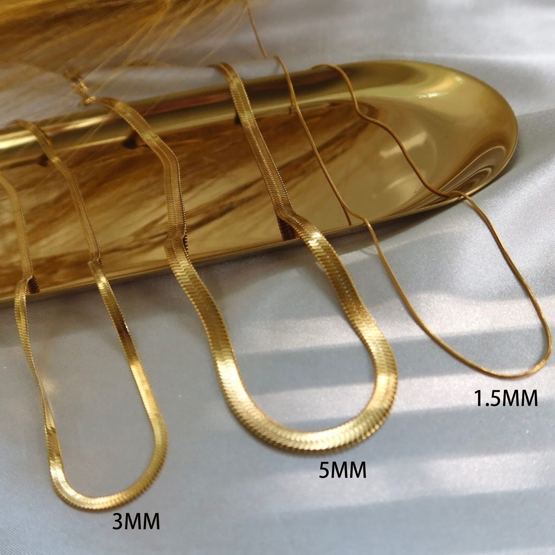 14K Gold or Silver Plated Snake Chain Herringbone Choker Necklace for Women, 1.5/3/5mm Wide, 14"/16" Length Jewelry Gift