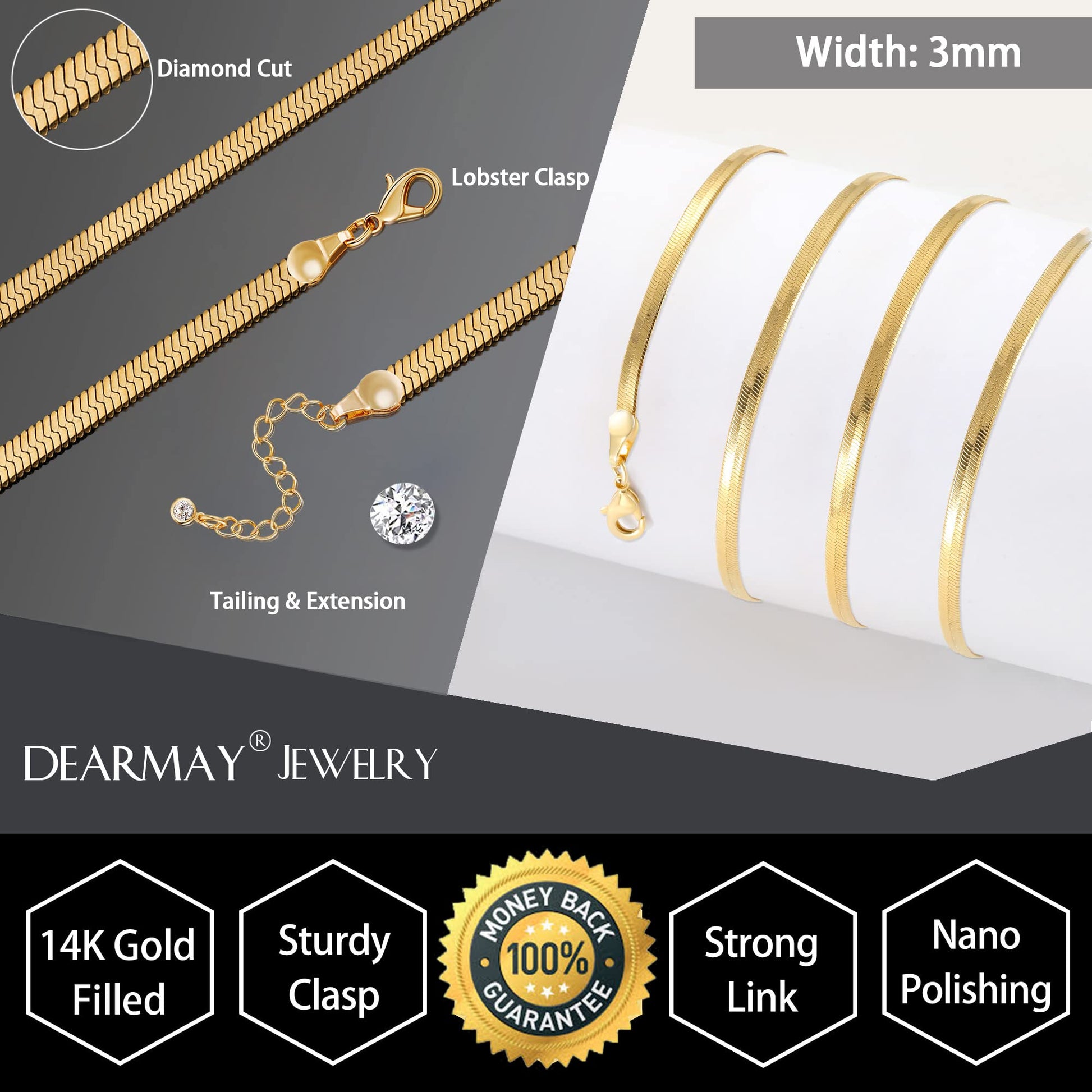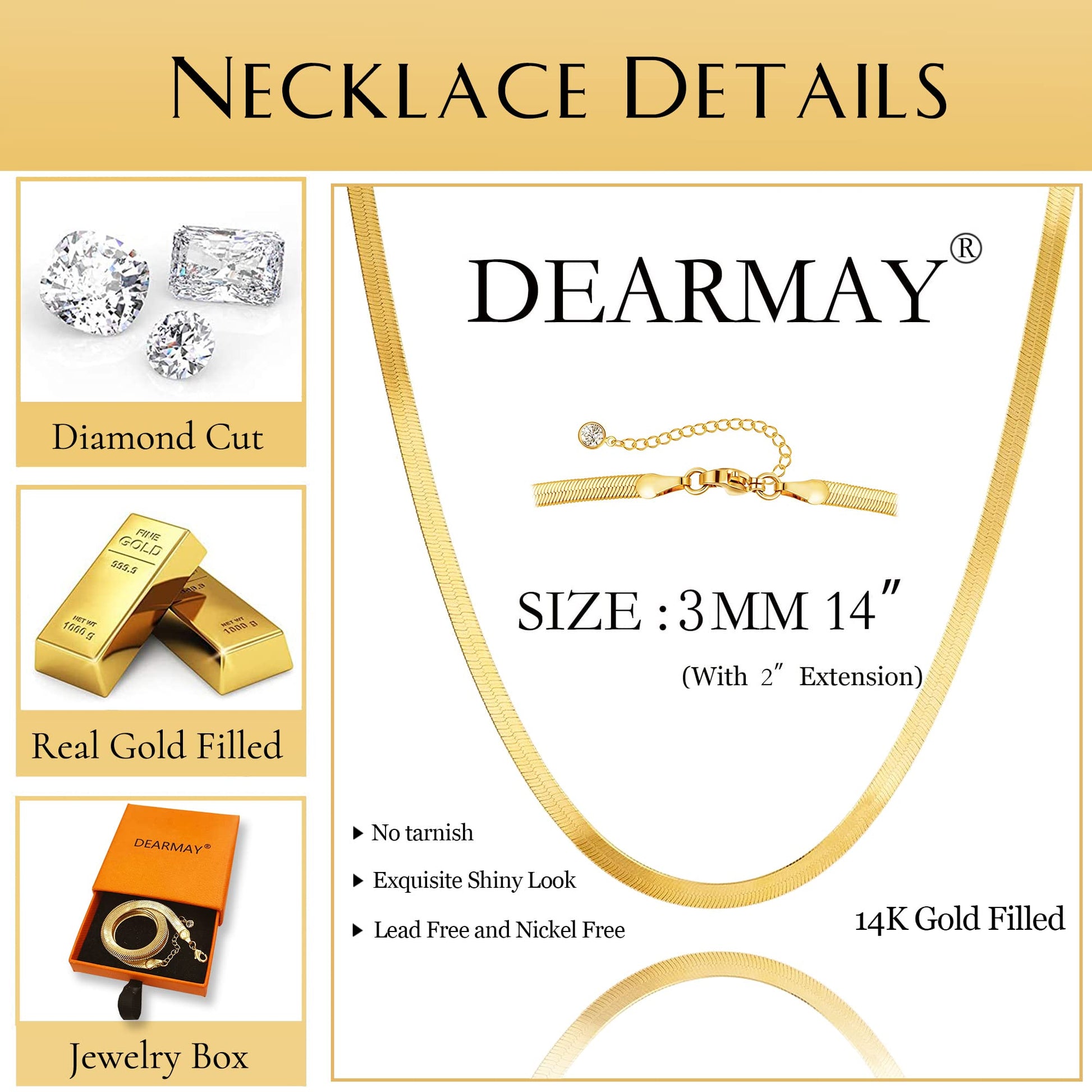 DEARMAY Dainty 14K Gold Chain Necklace for Women, Thin Chunky Herringbone Snake Rope Paperclip Chain Necklaces Set Layered Cute Choker Necklaces Aesthetic Jewelry Gift for Women