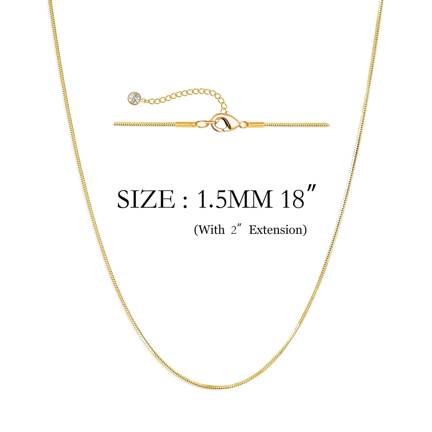 - Size and Length: Women's 1.5mm width herringbone necklace, 18" + 2" long.