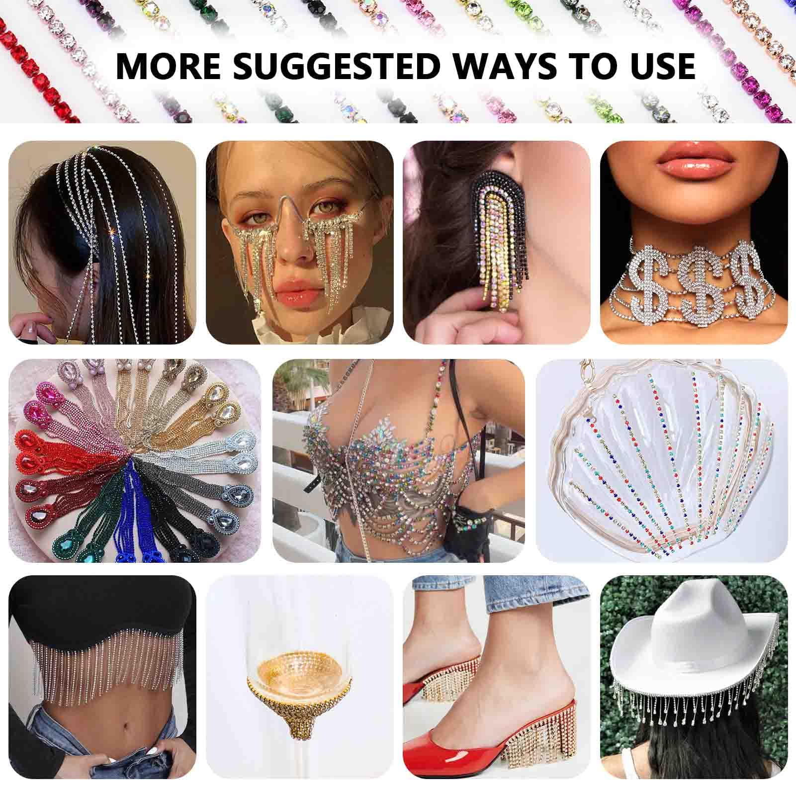 - ❤ Easy to Use: Dowarm Rhinestone Close Chain are all linked by a mesh grid, which can easily be cut with scissors, you can cut it to the length, then you can glue it onto crocs shoes, cups, candles, cakes,etc. (glue is not included); Or you can sew it with a matching thread; Just do it as you like.