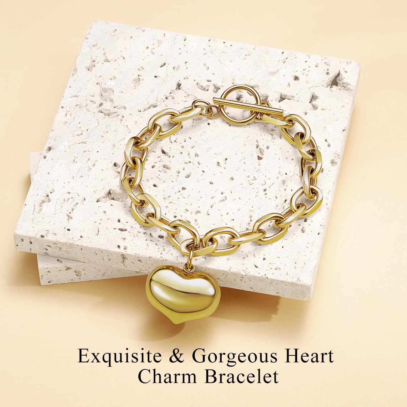 - Design Inspiration: Chunky gold bracelet adopts heart pendant, light and without losing texture, symbolizing love, romance, warmth, care and heart to heart. The thick chain with the eye-catching solid heart pendant, gently wrapped around the wrist, as the guardian of love, tender and romantic, always with you. Ideal gift for loved ones on Valentine's Day, Mother's Day, Christmas, birthdays and other occasions.