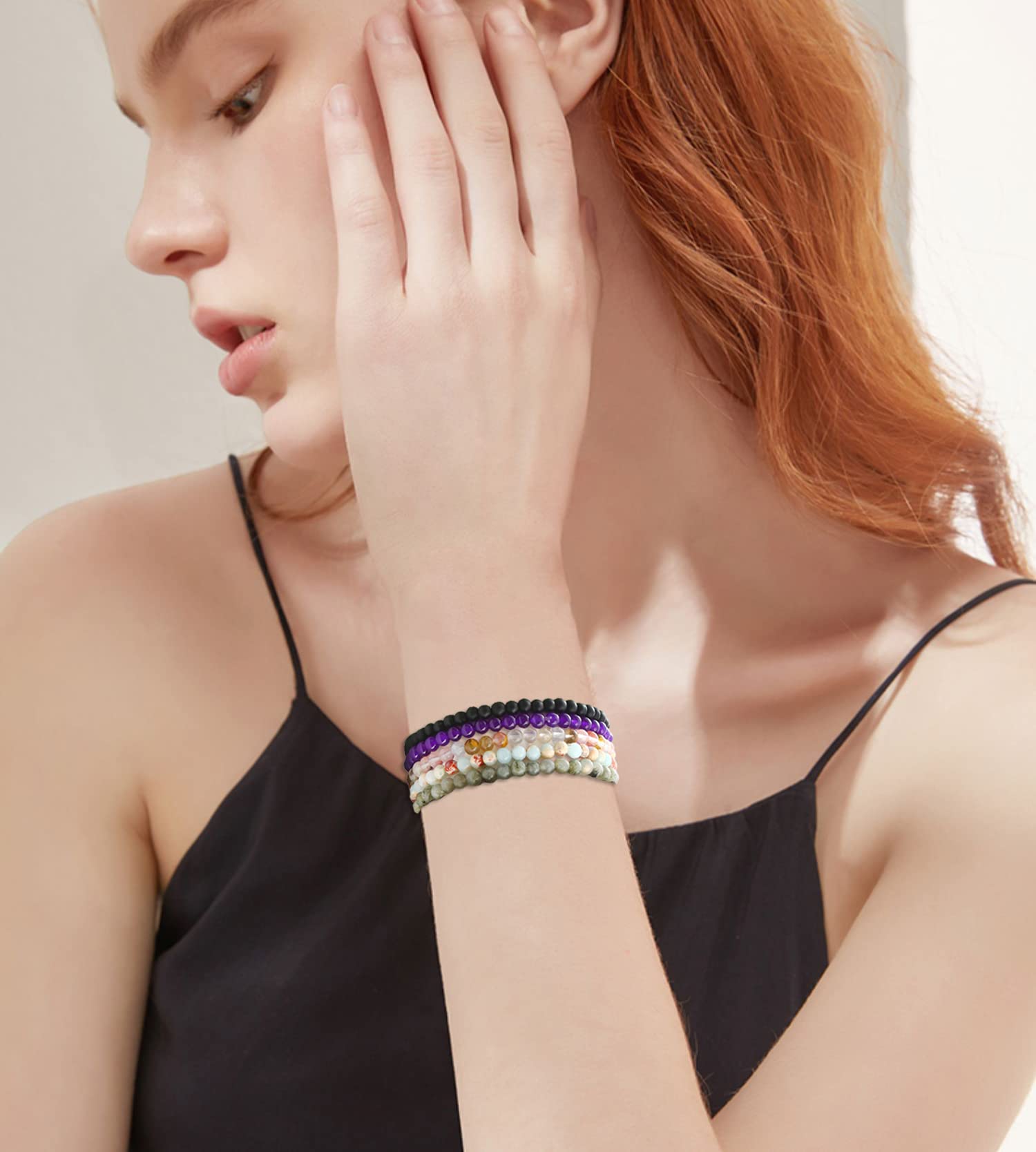 - Quality Material - These crystal beaded bracelets are made of 4mm stone beads, you can choose different colors to match your other bracelets to show your different styles these beaded bracelets are quite beautiful, shiny and good polished,do not irritate your skin.