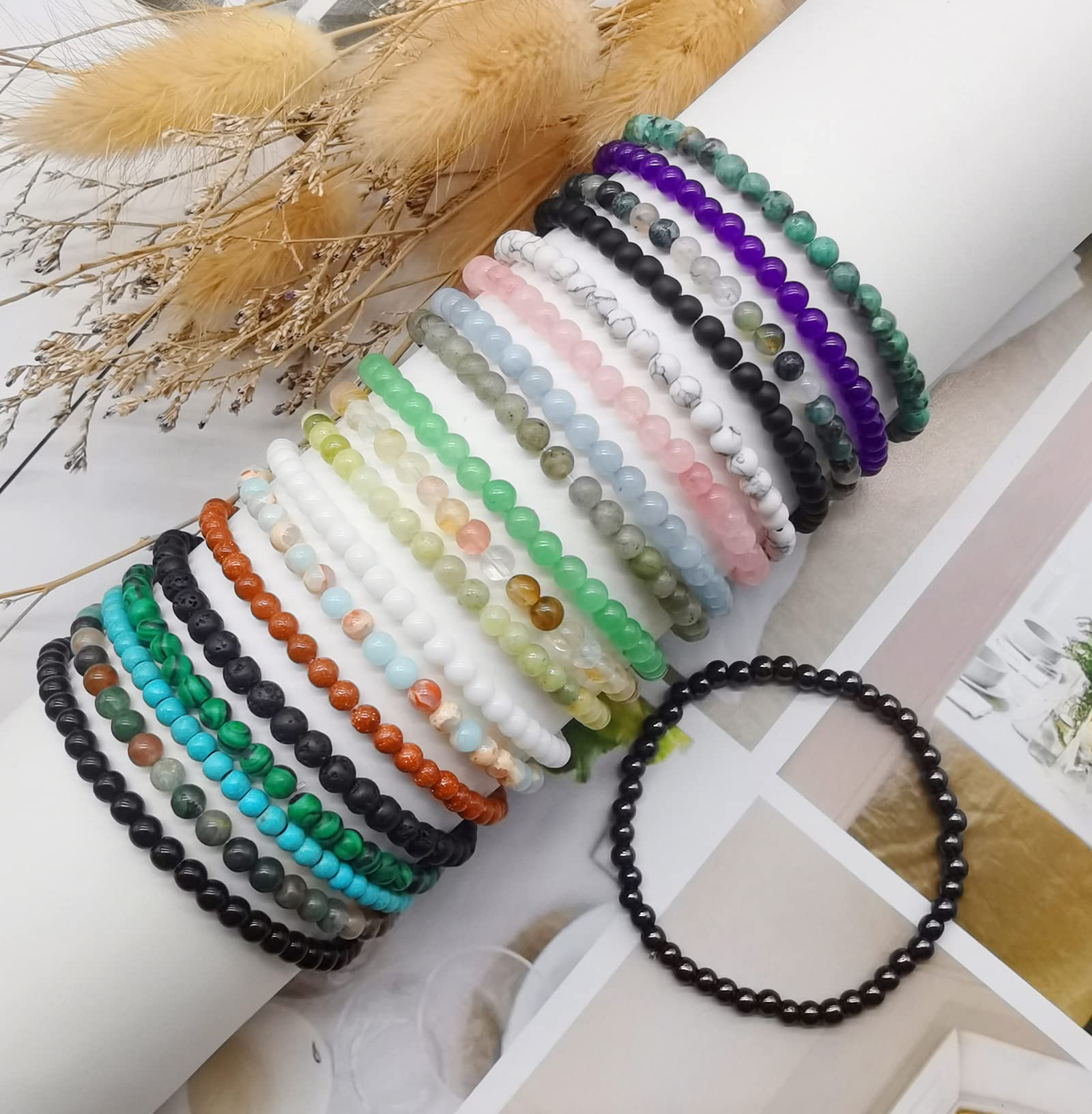 - Semi-precious Gemstone Bracelet Set - 20pcs 4mm stone bead bracelets in a set, including rose quartz bracelet, amethyst bracelet, green aventurine bracelet, african turquoise bracelet, lava bracelet, black agate bracelet, howlite bracelet and etc. you can wear bracelets alone or stack them at will, colorful charm bracelets are both suitable for women and men.