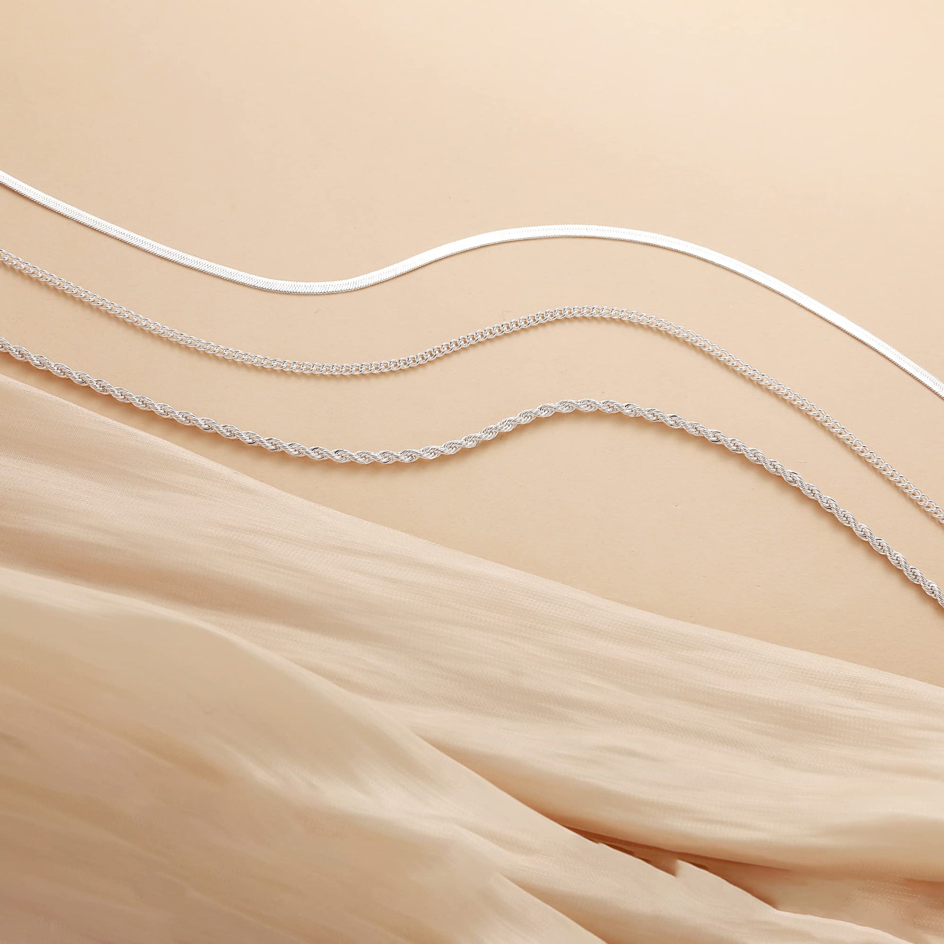 - Silver Chain Size And Package: Inner Herringbone necklace Width: 3 mm,length:14"+2" extension. Chain width: 1.5 mm, length: 16.5". Our dainty jewelry packaged with a delicate gift box ,You will get dainty silver necklace in a wonderful small box