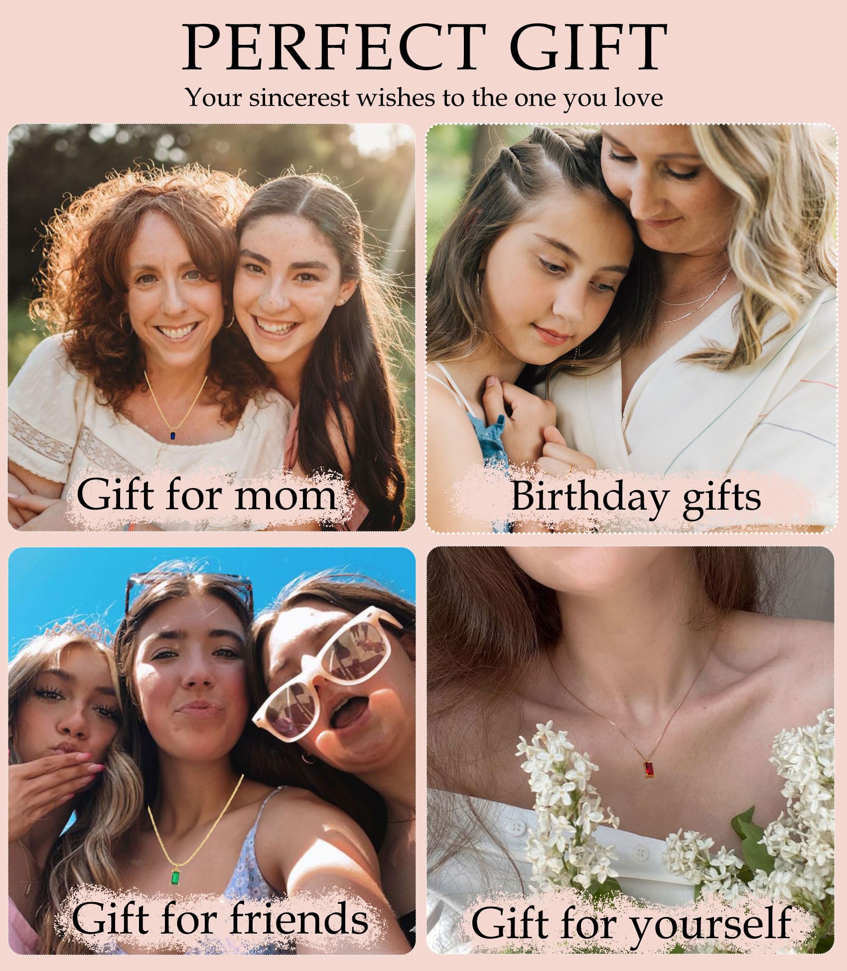 - 12 MONTH BIRTHDAY GIFT: The dainty birthstone necklace is your best choice as birthday gift to your mom, wife, friends or yourself. For example, the emerald necklace means lucky, and the diamond necklace means innocence and love. Choose the unique stone for them to express your sincerest wishes