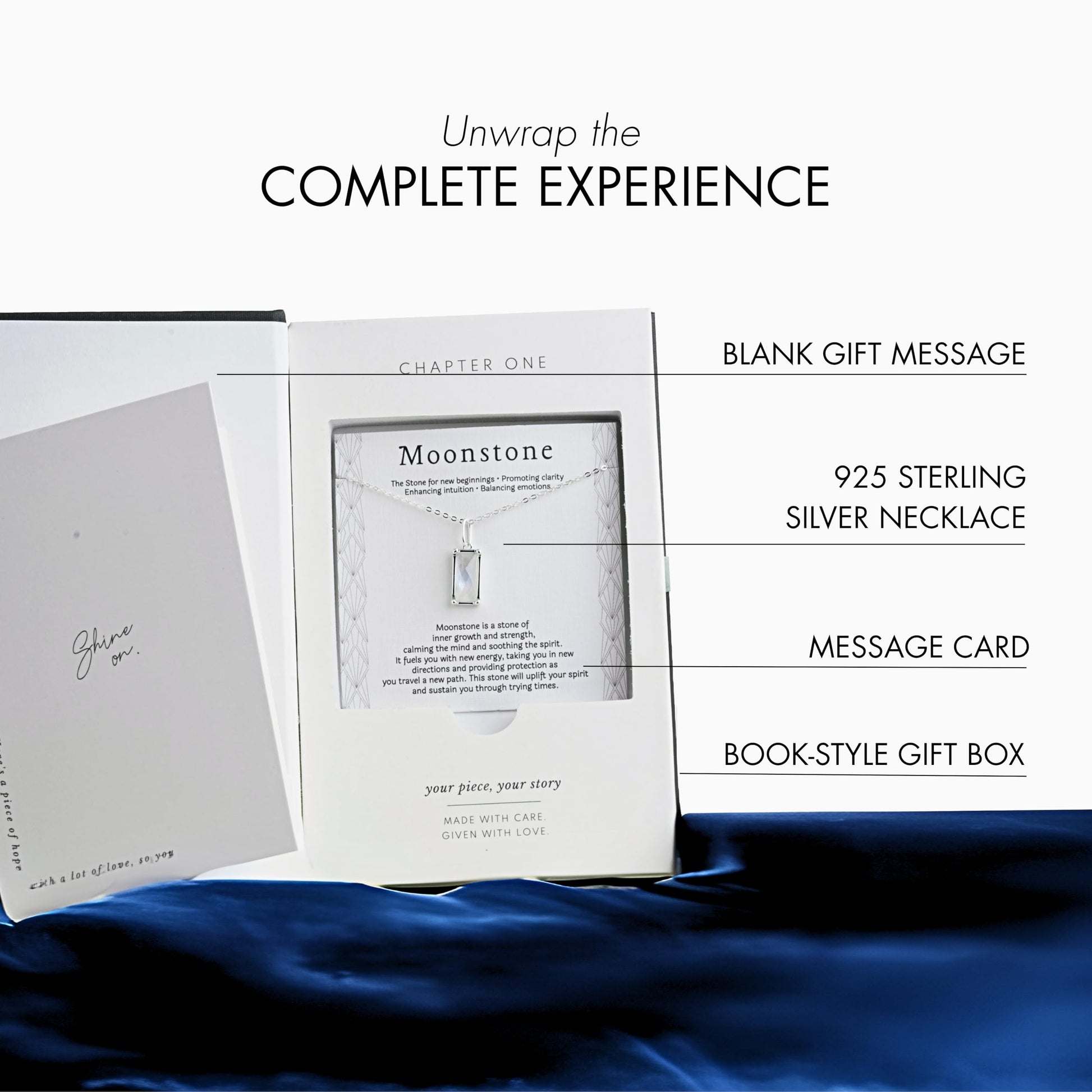 - QUALITY MATERIALS: All the components of our new beginnings gifts are made with precious metal, for the precious woman in your life. Grade AB moonstone with sparkling rainbow sheen! Referred to as a “woman's healing stone”, it helps balance hormones and female cycles, promoting fertility. The sterling silver chain is 18” long with adjustable loop at 16”.