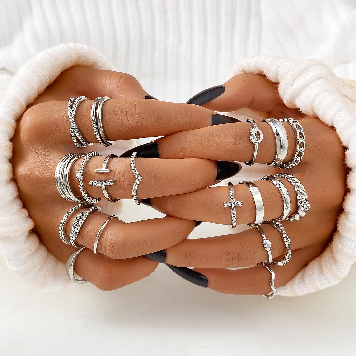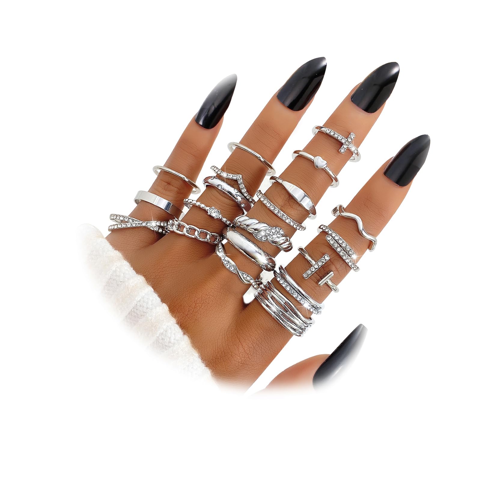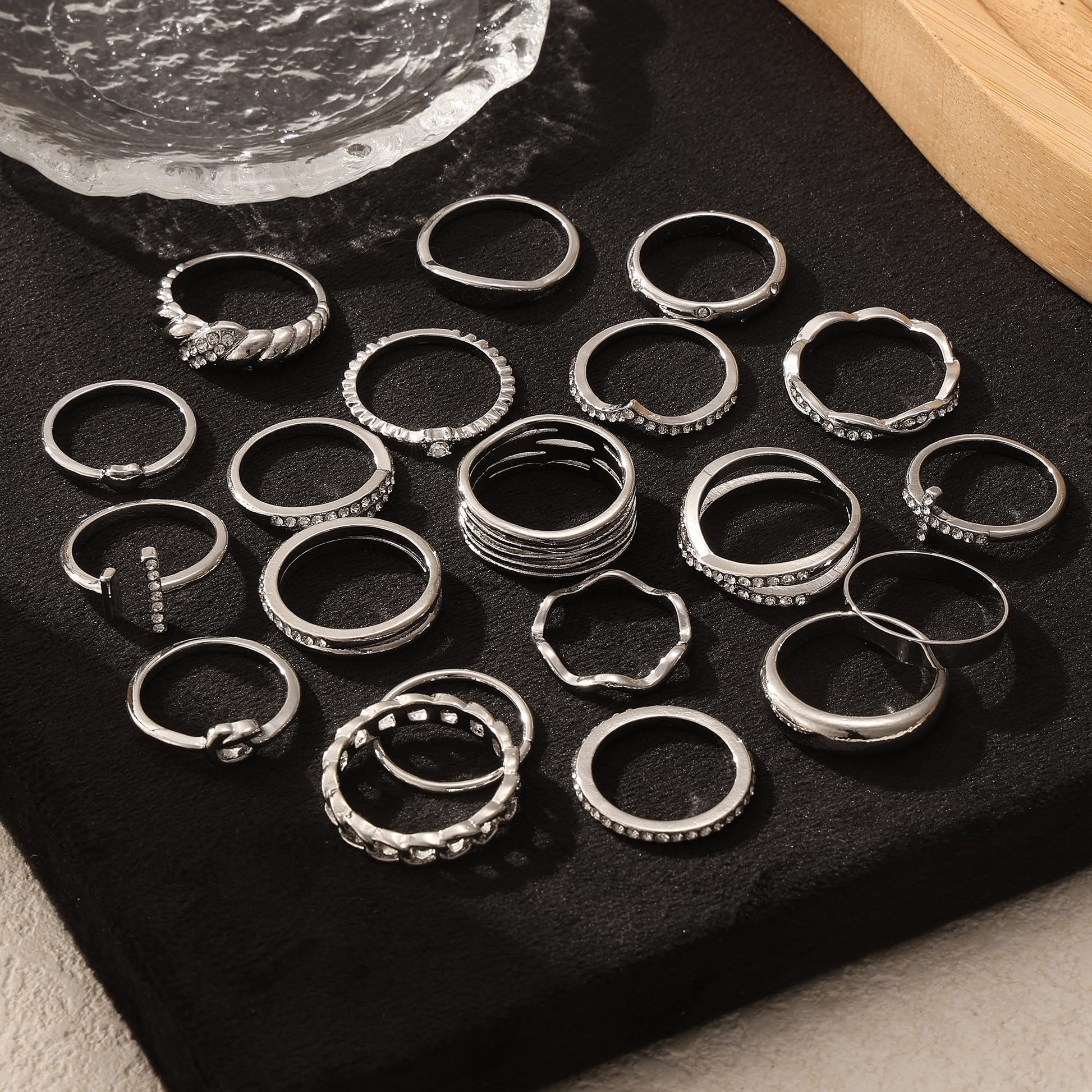 - SILVER RINGS PACK: Set contains 20 rings in a variety of styles and a mix of sizes. They can be worn individually or stacked on different fingers. So that you can wear your ring every day without repeating it