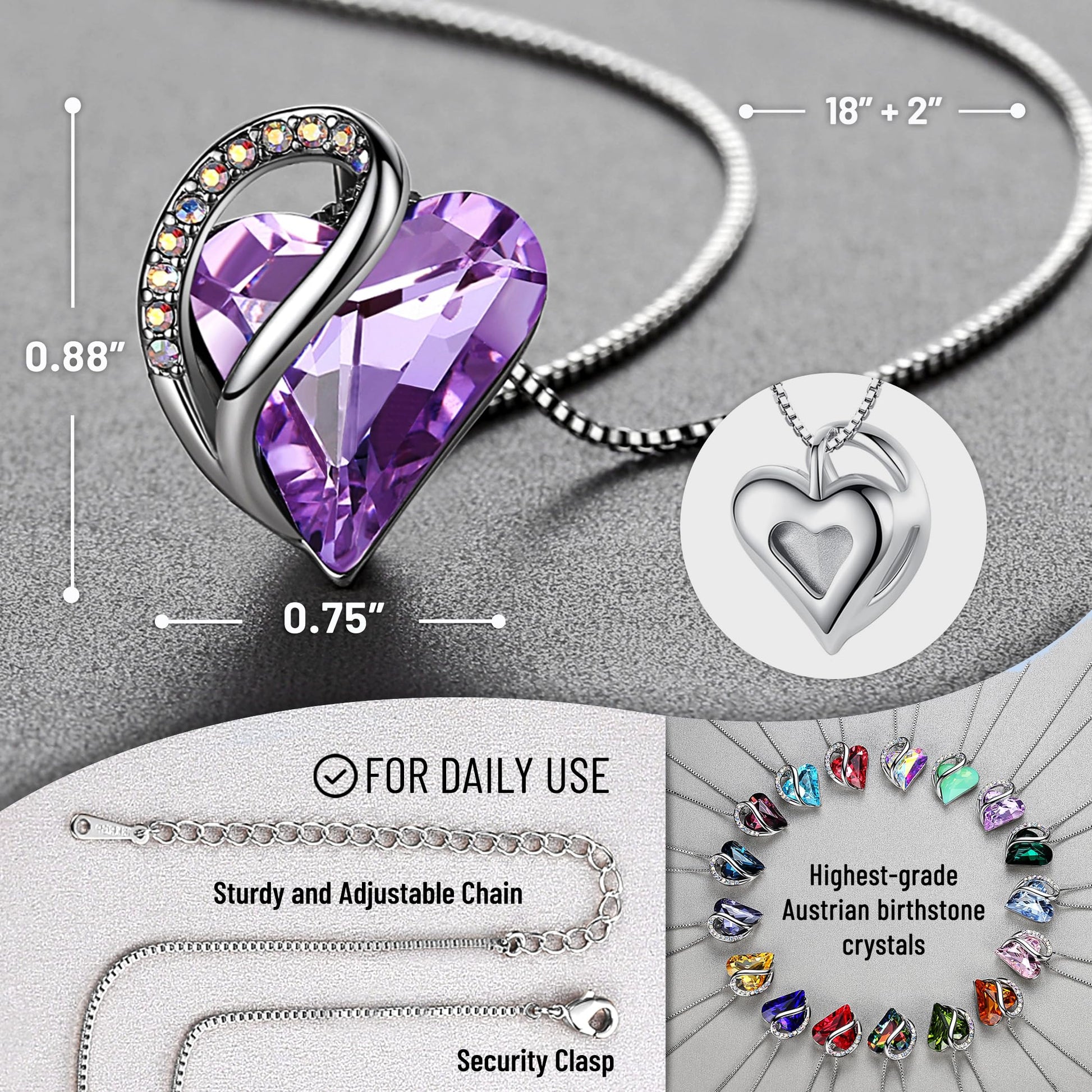 - Heart Necklaces with Birthstone Crystals - Our Infinity Love heart necklace for women is an original design from our studio in Boston and features a precious Austrian birthstone crystal. This classic yet innovative deisgn takes you across dimensions of time and space, the prosperity of life, and ultimately the triumph of love. It's a perfect gift for women !