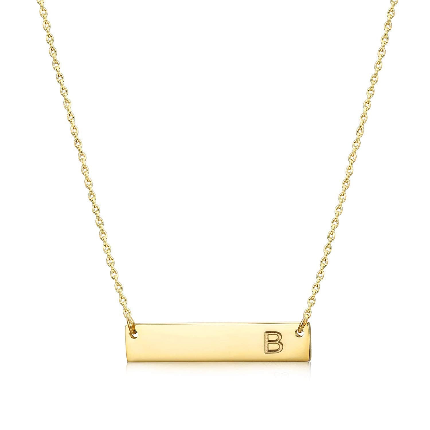 Bar Pendant Initial Necklace, 18K Gold Plated Stainless Steel, Dainty Personalized Letter Necklace for Women