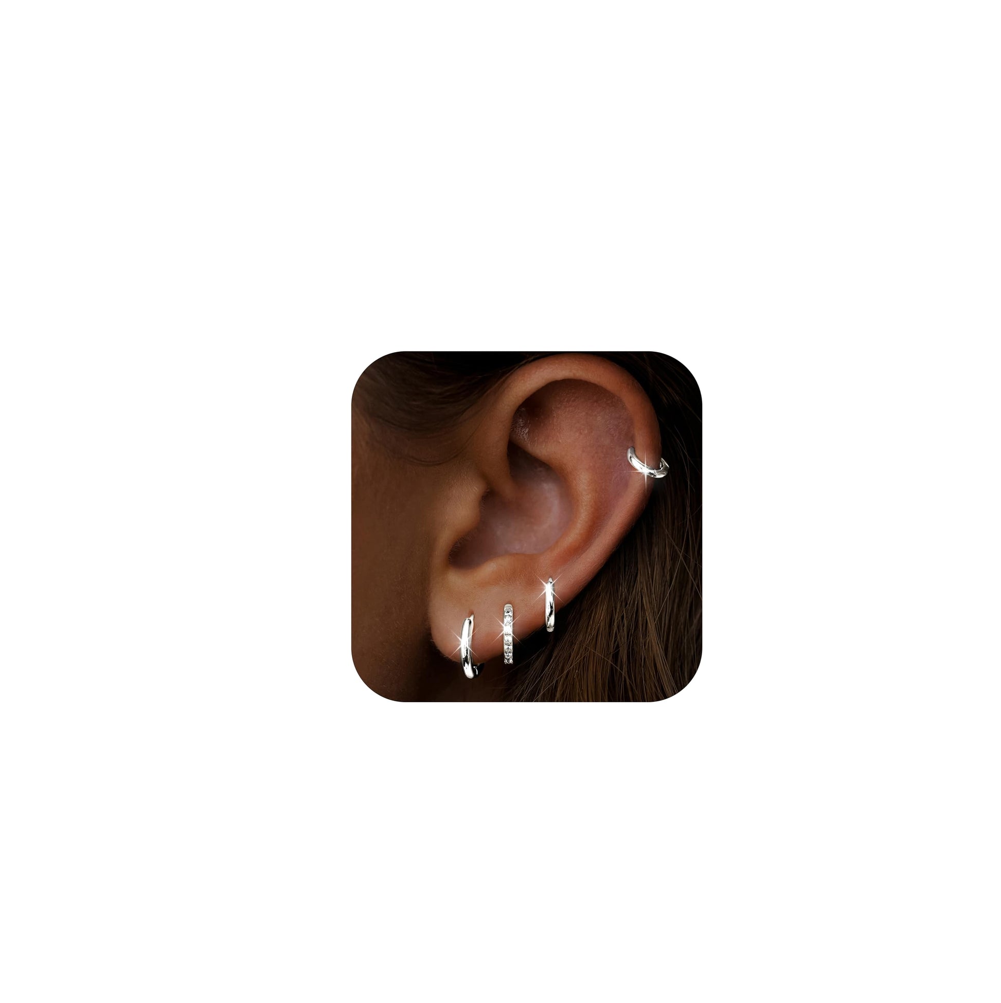 - Silver Small Huggie Earring Sets: Our adorable small thin silver huggie hoop earrings are designed to be super tiny cute and lightweight, each pair of earrings weighs only 2 grams, making them perfect for everyday wear. Our silver earring sets for multiple piercing feature a stylish and trendy design that will instantly elevate your look.