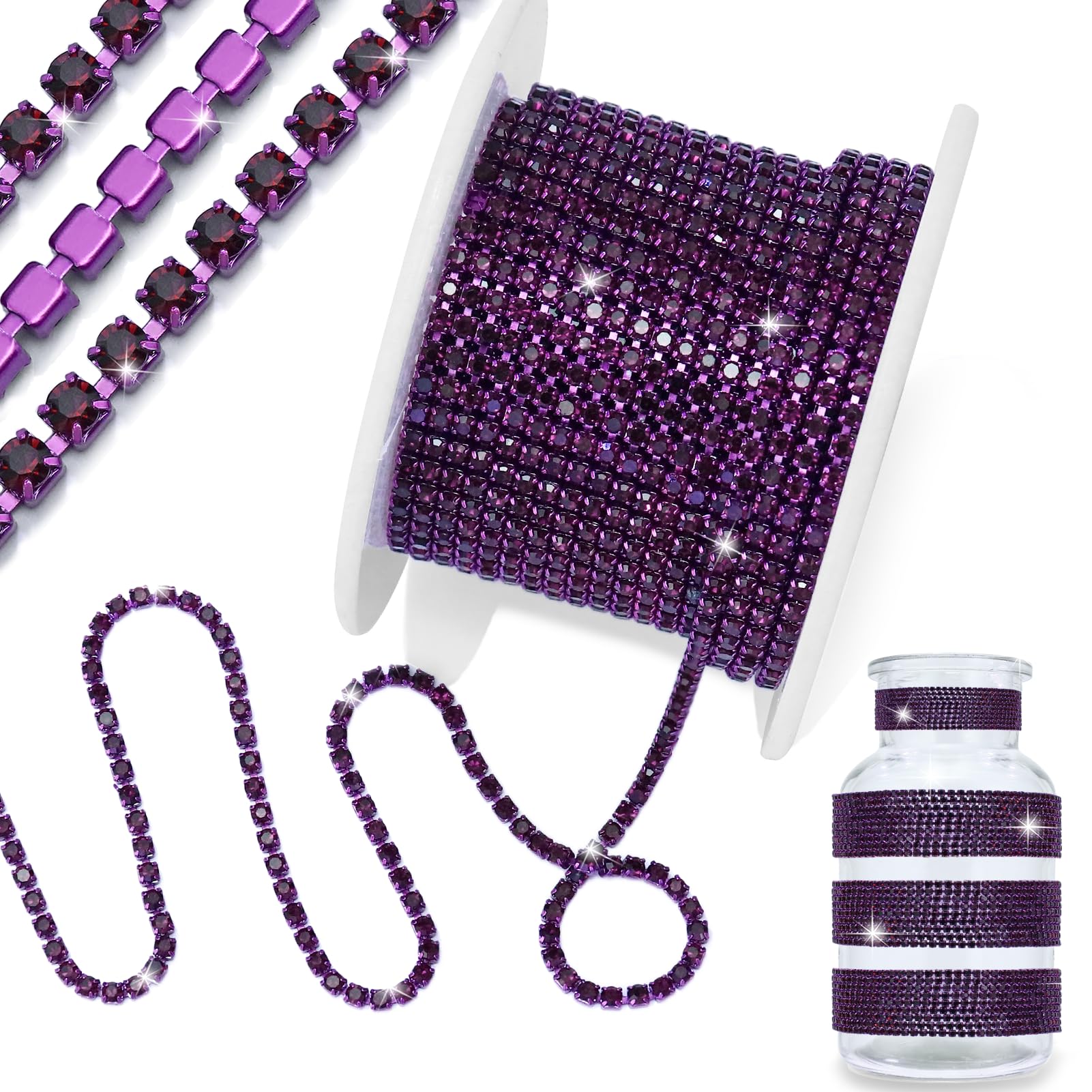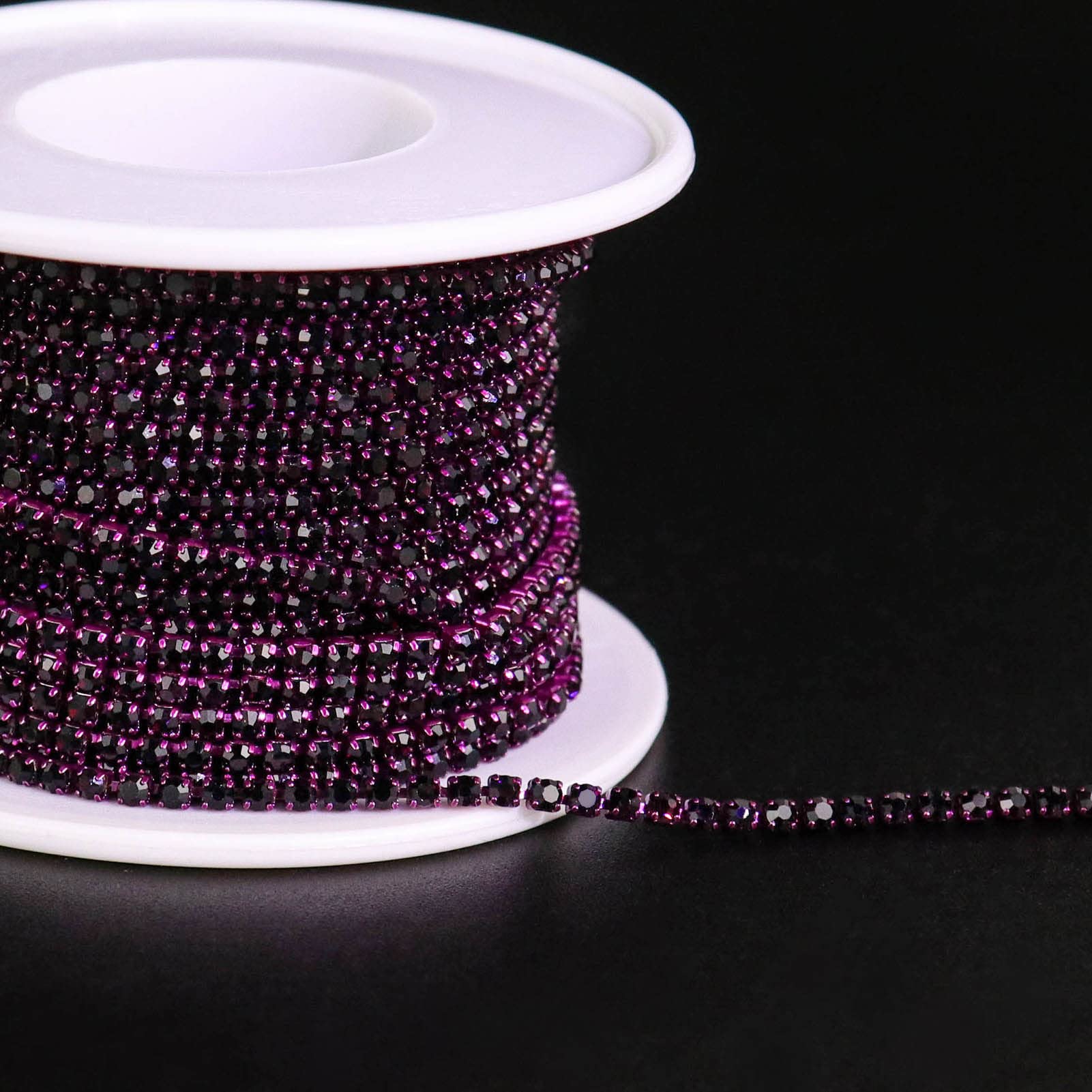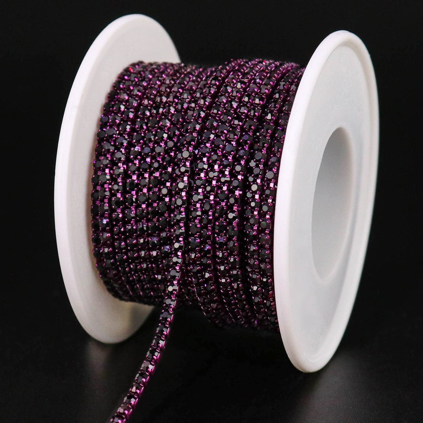 - ▲ Towenm Rhinestone Chain Roll: 10 Yards 1 Roll. Size: SS6(2mm); Color: Dark Purple