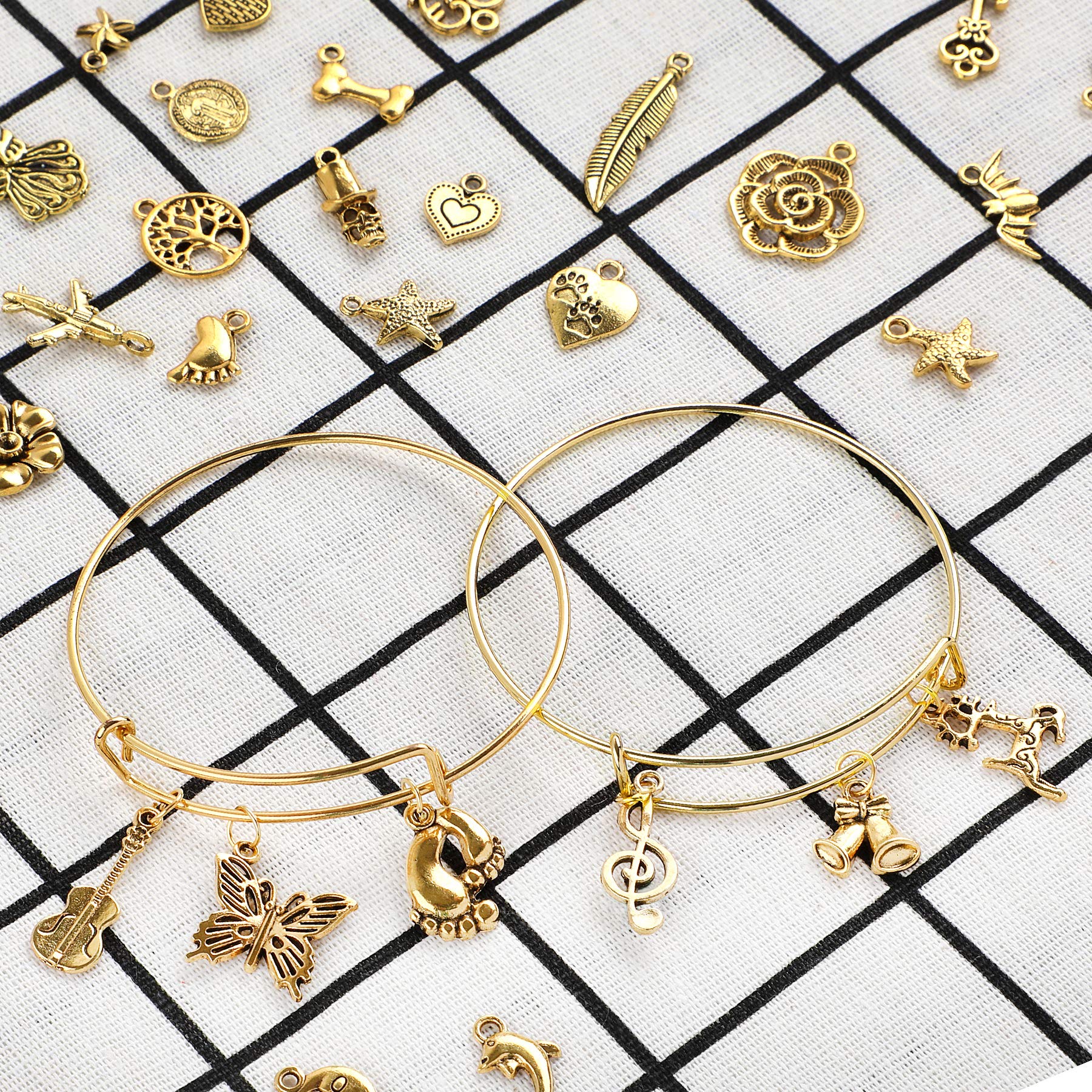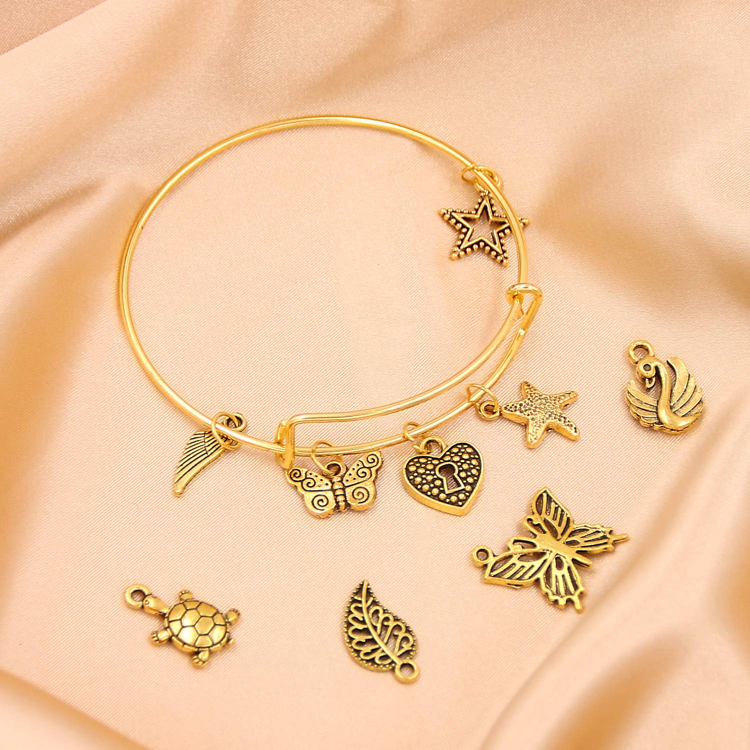 - Good Materials - Gold blank bracelets are made from steel wire, smooth surface, solid and comfortable to wear. And antique gold charms are made of zinc alloy with antique gold plated, strong, sturdy and long time for use.